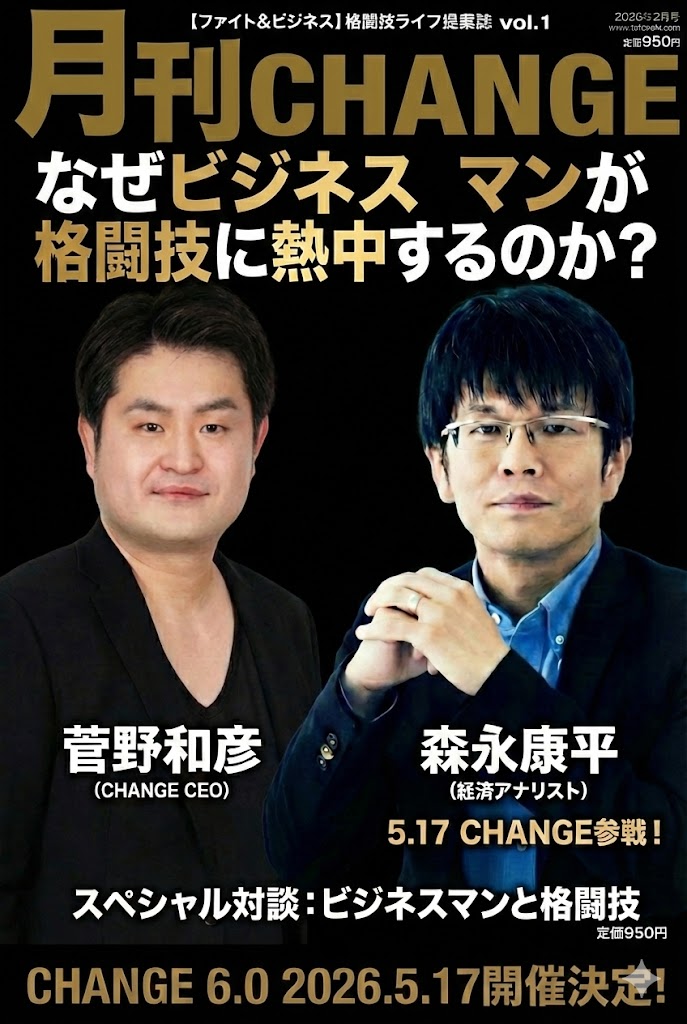 【月刊CHANGE 独占対談 2026年2月】 経済アナリスト・森永康平×CHANGE CEO 菅野和彦 なぜビジネスマンが格闘技に熱中するのか?