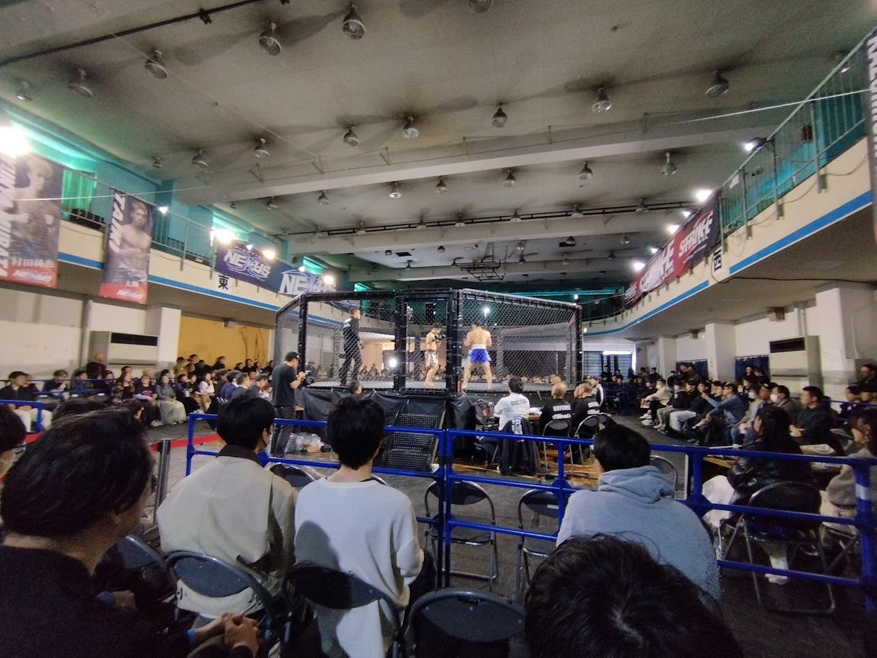 会場内はすでに、Fighting NEXUSの熱烈なファンたちでごった返していた。歴史と実績のある興行だけあって、運営のスムーズさ、照明や音響の演出、観客の熱量、すべてにおいて非常に洗練されており、盛り上がりを見せている。プロモーターという職業病だろうか、私はただ試合を楽しむだけでなく、「この導線はどうなっているのか」「セキュリティの配置は」「スポンサーロゴの見せ方は」と、無意識にあらゆる要素を観察し、CHANGEに還元できるものを吸収しようと目を光らせていた。他の団体の素晴らしい興行を見ることは、何よりの勉強になるのだ。