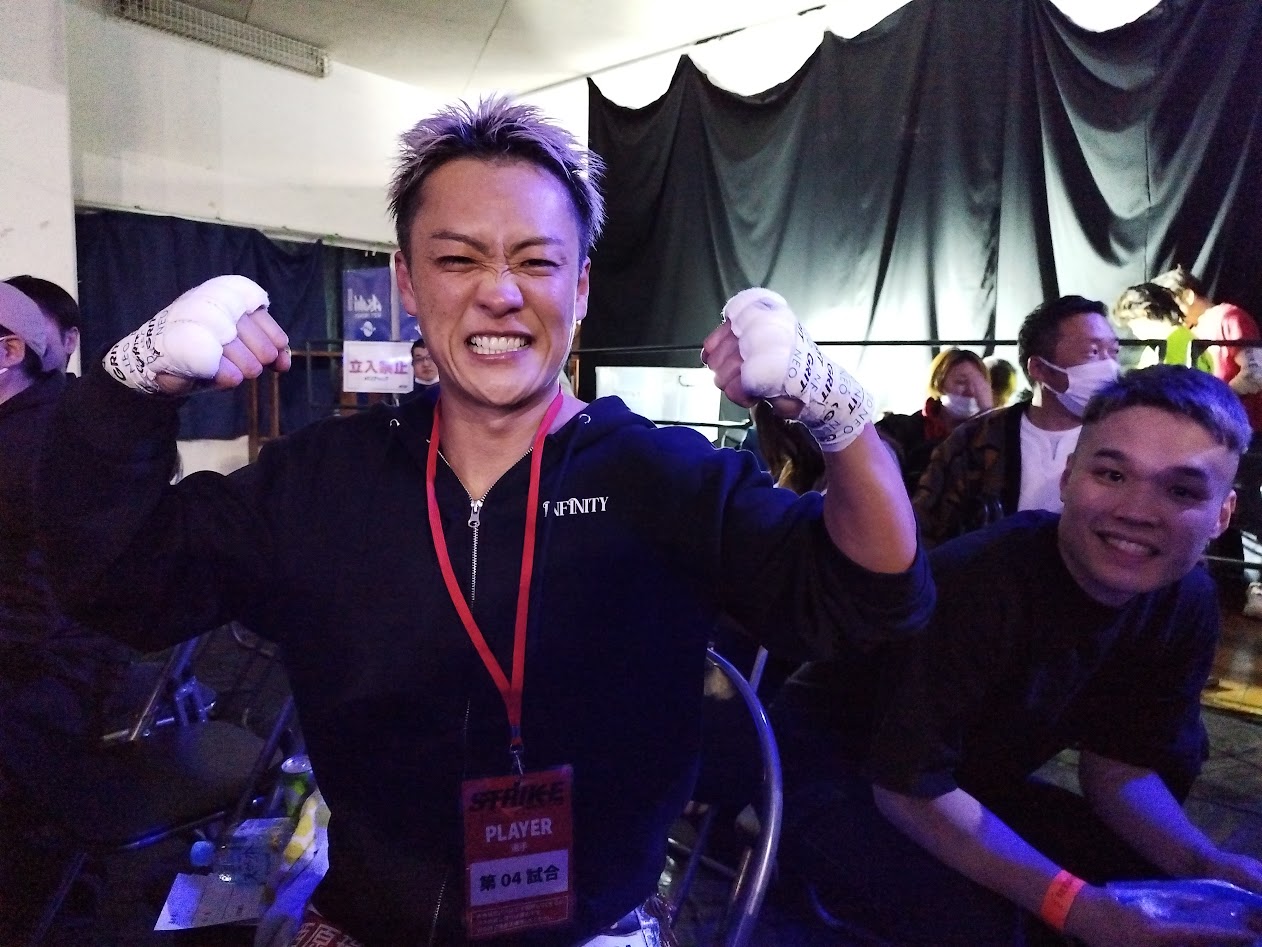 その傍らには、いつも泉岳寺のジムで彼を支え、会員からも愛される「笑顔が素敵な」セコンドの山田君が立っていた。彼もまた、重圧から解放された最高の笑顔を見せていた。