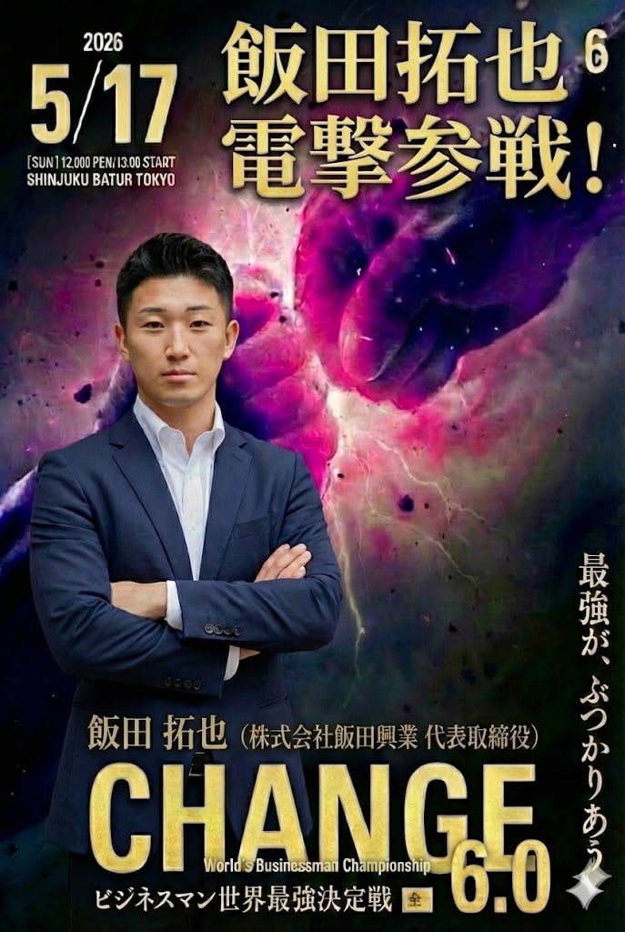 【大会概要】 ビジネスマン格闘技 CHANGE 6.0 ■日時:2026年5月17日(日) 12:00開場/13:00開始 ■会場:新宿バトゥール東京 ■主催:ビジネスマン格闘技団体 CHANGE ■チケット・詳細:公式HPにて公開中