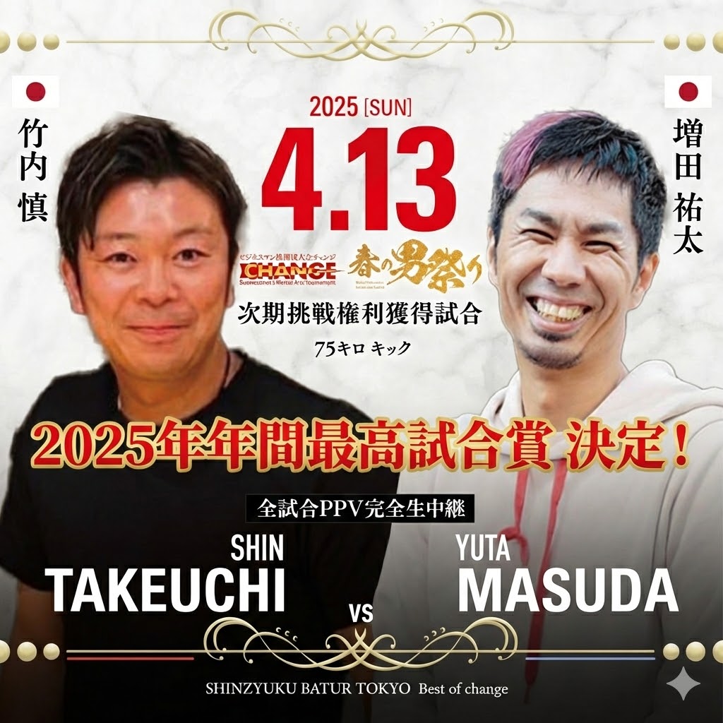 2025年4月13日の大会では見事勝利。そのあまりの気迫と技術に、解説席の格闘王・前田日明氏をも唸らせ、「2025年 年間最高試合賞」を受賞した。