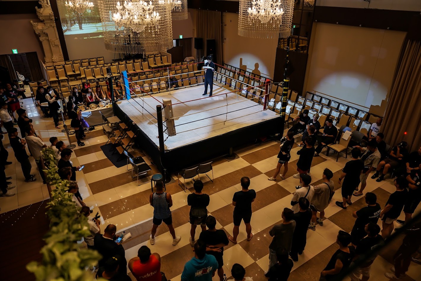 (ビジュアル:豪華な会場、スーツ姿の観客、華やかなラウンドガールなど、「大人の社交場」としてのCHANGEの雰囲気が伝わる写真)