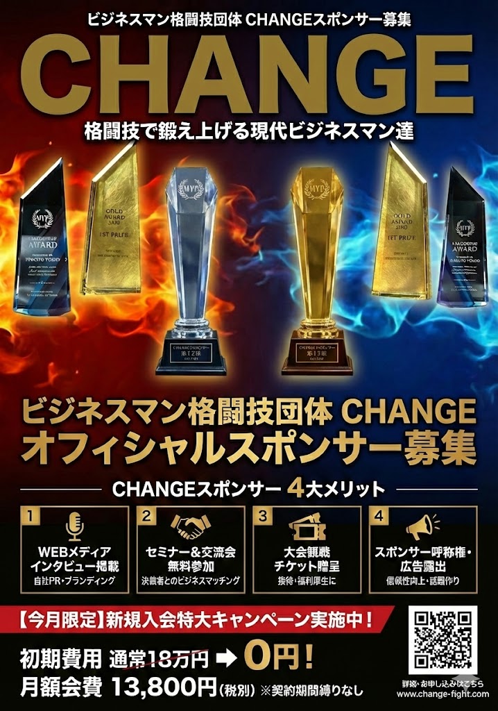 【法人・個人事業主限定】CHANGE オフィシャルパートナー募集 格闘技で繋がる、最強の決裁者ネットワークへ。